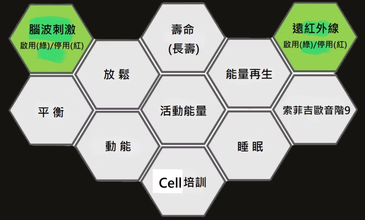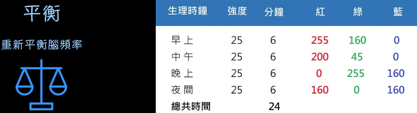 --> 雙耳節拍 (Binaural Beats) + 光子學顏色刺激 = 腦波夾帶(Brainwave Entrainment),